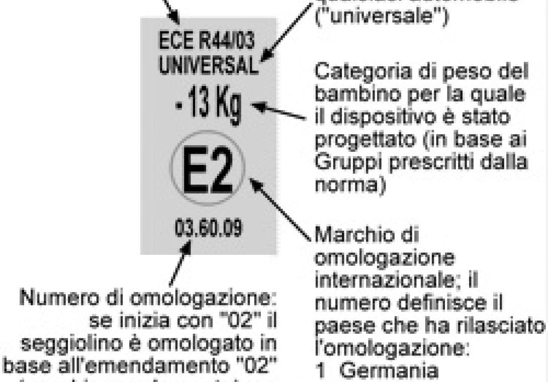 Il seggiolino deve essere del tipo prescritto per il peso del bambino: